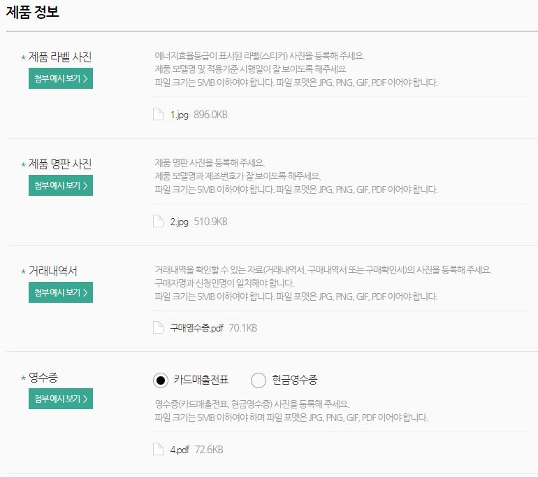 가장 중요한 제품정보입니다. 실수하면 정정하라는 연락이 오고 환급받는데 까지 더 오래걸려요!! 라벨 사진, 명판 사진은 예시 사진을 보면 쉽게 이해 할 실 거라고 생각하고, 거래내역서와 영수증 샘플을 보여드리겠습니다. 보통 인터넷으로 사시면 구매 내역의 주문 상세에 들어가면 아래와 같이 되어있을 거에요