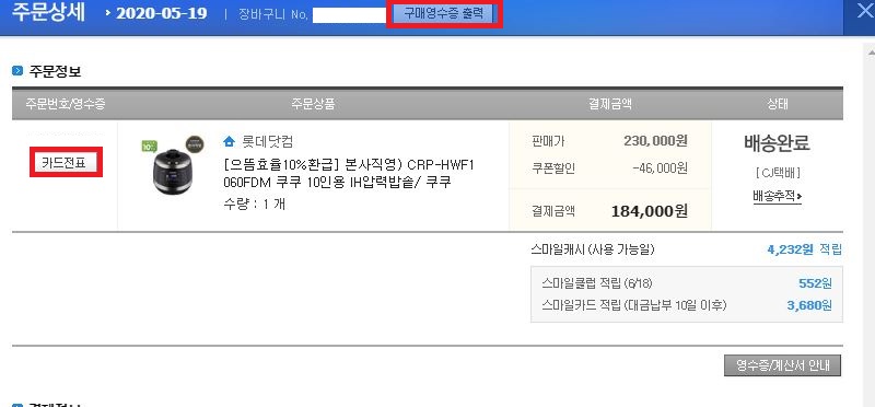 여기서 구매 영수증 출력을 눌러 나오는 것이 거래내역서, 카드전표 눌러서 나오는 것이 영수증 입니다 ! 구매 영수증이라고 영수증 란에 넣으면 안되는 것이죠 !