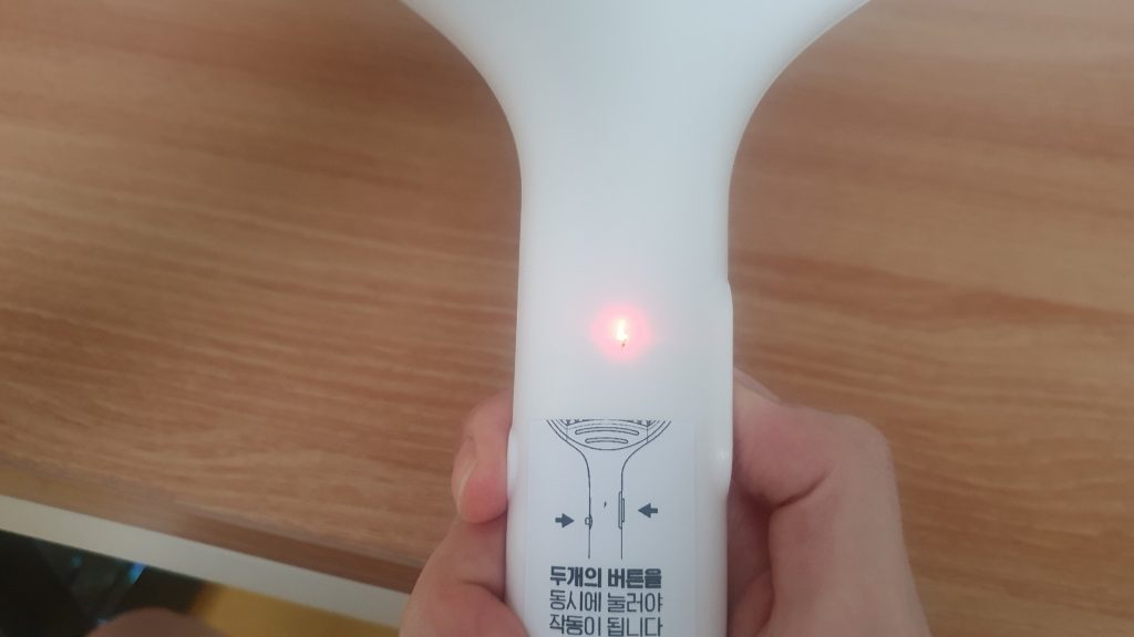 양 쪽을 눌러서 사용해야 하고, 양 쪽을 누르면 빨간 불이 들어오는데 이 때 전기가 흐릅니다 !