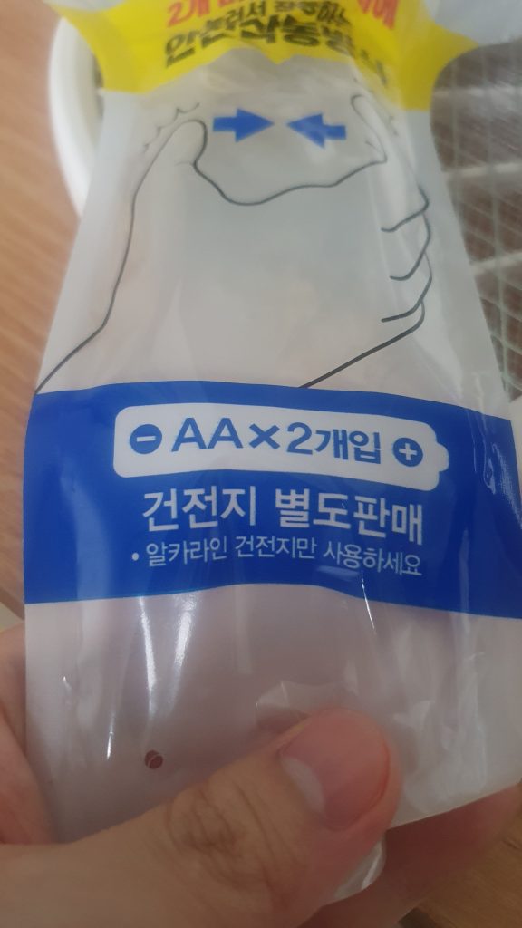 우선 가격은 5,000원이고 AA 건전지 2개가 필요하며, 제품에 포함되어있지 않기 때문에 별도로 구입해야 하는 점 참고해 주세요 !