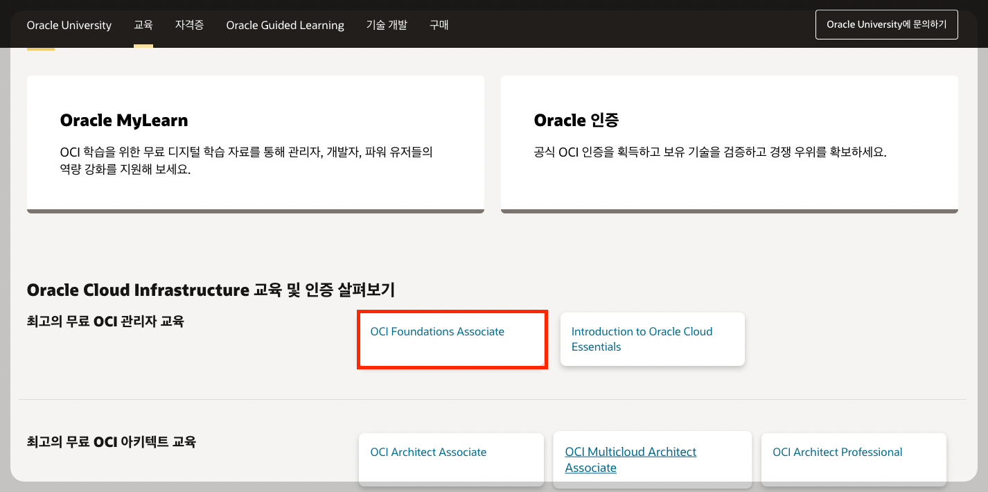 4. 다시 스크롤 내리다가 OCI Foundations Associate클릭