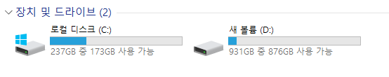 장착 후 1테라바이트가 잘 잡힌 것을 확인 할 수 있었습니다!!