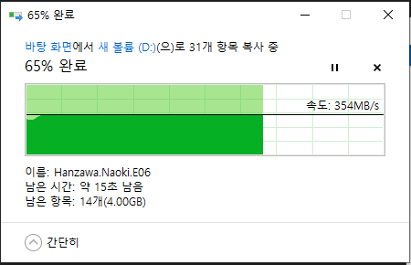 우선, 요놈은 데스크탑 -> 외장하드 속도입니다.