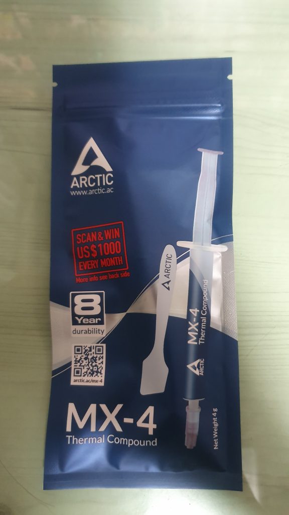 그리고 MX-4로 재도포를 해주었습니다. 스크래퍼를 사용하긴 했는데 점성이 생각보다 진해서 바르는게 힘들었습니다 … 그냥 X자로 하는게 나을 뻔했네요 ㅎㅎ
