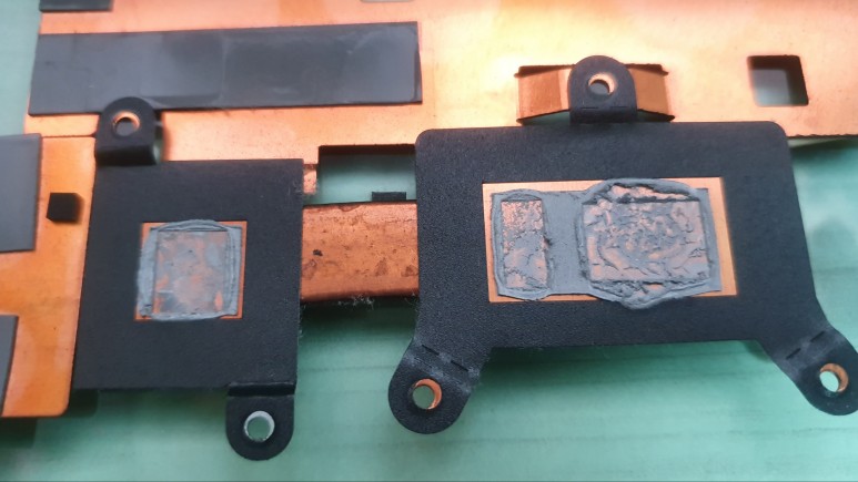 떡져있는 써멀구리스를 볼 수 있습니다. 2년 써서 굳어있을줄 알았는데, 생각보다 많이 굳어있지 않았습니다. 그래서 쉽게 닦을 수 있었네요