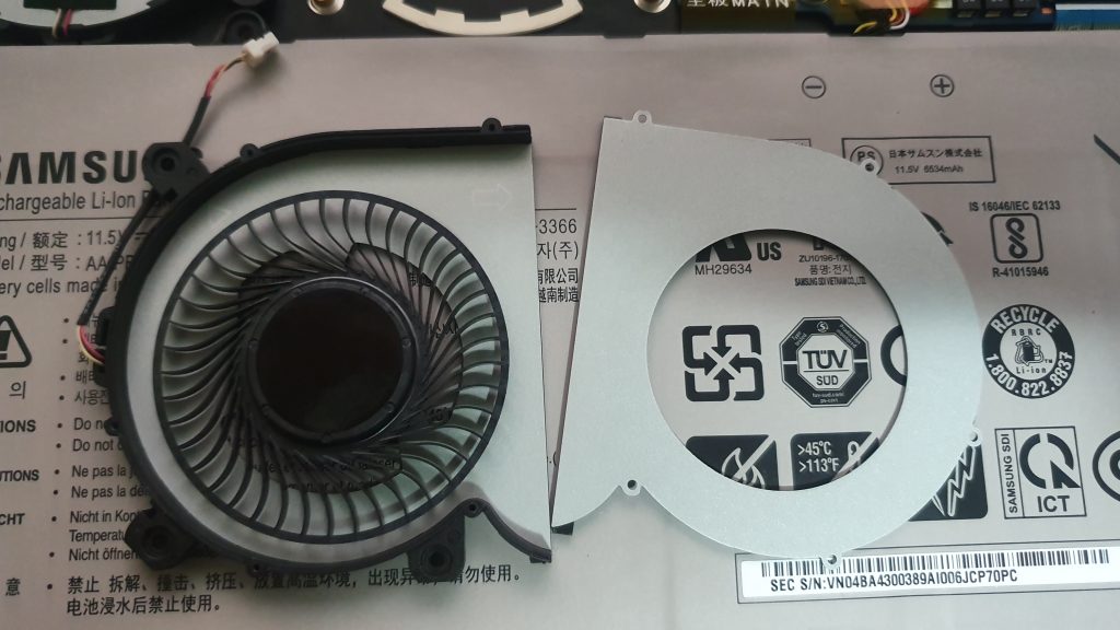 팬이 두개 있는데, 들어내고 분해하여 화장할때 쓰는 붓으로 털어 주었습니다. 스프레이로도 해보았는데, 효과도 없을 뿐더러 너무 가까이 쏘면 휘거나 할 수도 있겠더라구요… 그래서 저는 붓으로 살살 털어내 주었습니다.