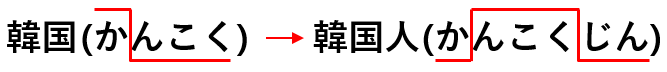 – 예 : 本(ほん) + 棚(たな) = 本棚(ほんだな)