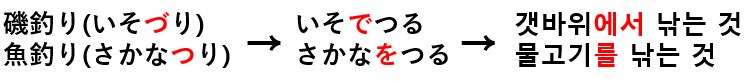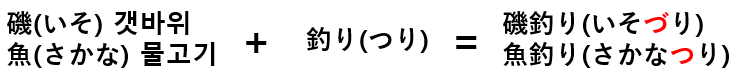 그런데 いそ와 결합하면 づり가 되고, さかな와 결합하면 つり가 됩니다. 그 이유는 단어의 의미에서 나옵니다.