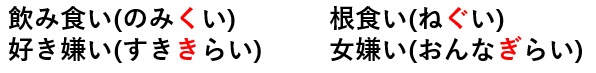 위 처럼 飲む와 食う / 好き와 嫌い는 마시다 먹다, 좋다 싫다와 같이 동등한 관계이기 때문에 연탁 현상이 일어나지 않지만 그런 경우가 아닐 때는 연탁 현상이 일어나는 것이죠.