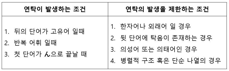 앞서 포스팅 일본어 연탁의 규칙에 이어서 당연히 연탁 현상이 일어나야 함에도 불구하고 일어나지 않게 하는 조건들에 대해 알아보겠습니다.