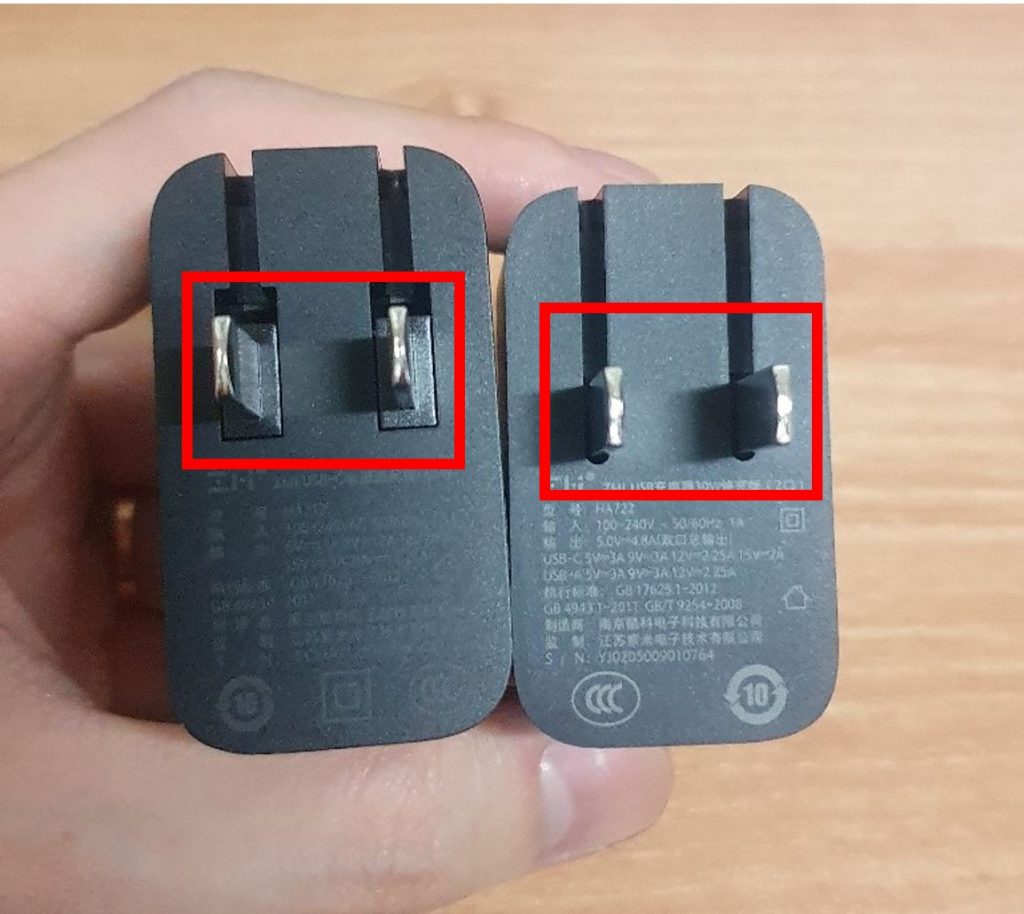또, 바로 위의 사진에 보시면 플러그 모양이 다릅니다. 65W 충전기는 좀더 견고하게 만들어져 있는 느낌이었습니다. 전체적인 마감은 둘다 좋았습니다.