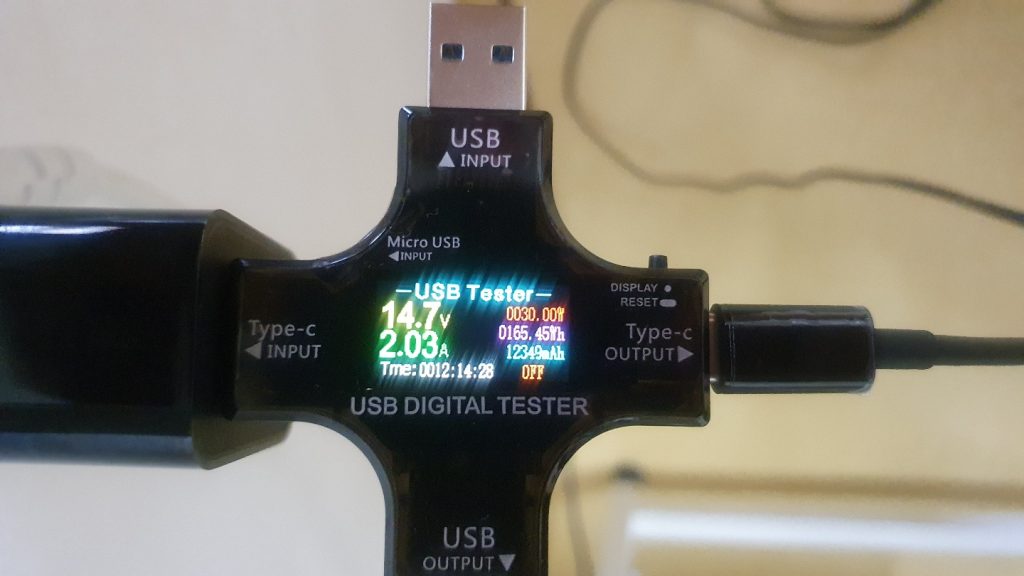 USB 테스터기가 한개 뿐이라 C타입을 측정하고 난 뒤, A타입을 측정하는 방식으로 했습니다. 근데 둘다 10W 밖에 안나오더라고요. 저는 당연히 C타입에 15W, A타입에 15W 나올 줄 알았는데 실망이었습니다… ㅠㅠ