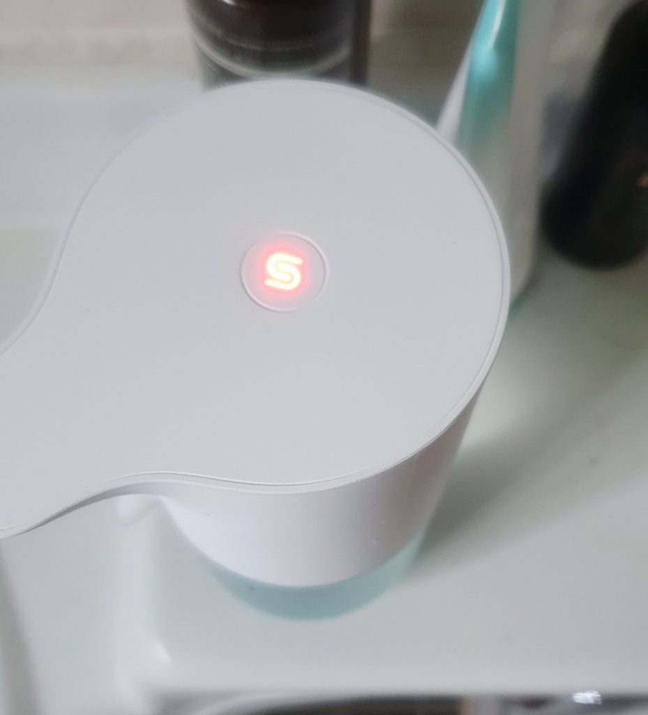 흰색 불은 금방 꺼지는 데 이상태가 사용 가능 한 상태입니다. 즉 센서가 동작하여 거품이 나오는 거죠. 이 버튼을 한번 더 터치하면 빨간 불이 들어옵니다. 마찬가지로 불은 금방 꺼지는 데 이 상태는 센서가 작동하지 않습니다.
